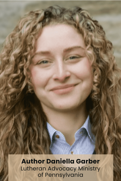 Daniella Garber is the ELCA Hunger Advocacy Fellow placed with the Lutheran Advocacy Ministry of Pennsylvania. Garber graduated from Bryn Mawr College with a math major and religion minor. Her background includes internships in data analytics and policy research focused on hunger and food access, as well as interfaith community building at Bryn Mawr College, and is excited to bring these experiences together in this faith-based advocacy role.