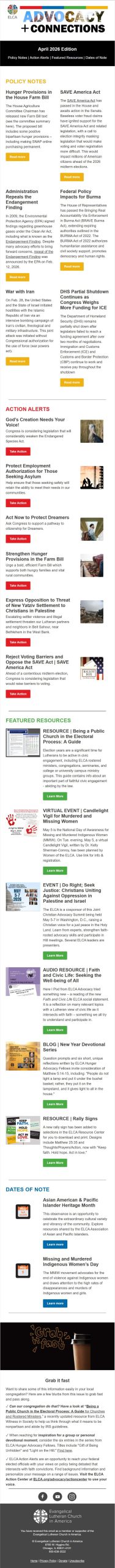 The following topical resources are available from resources.elca.org for use in public worship and personal devotion: