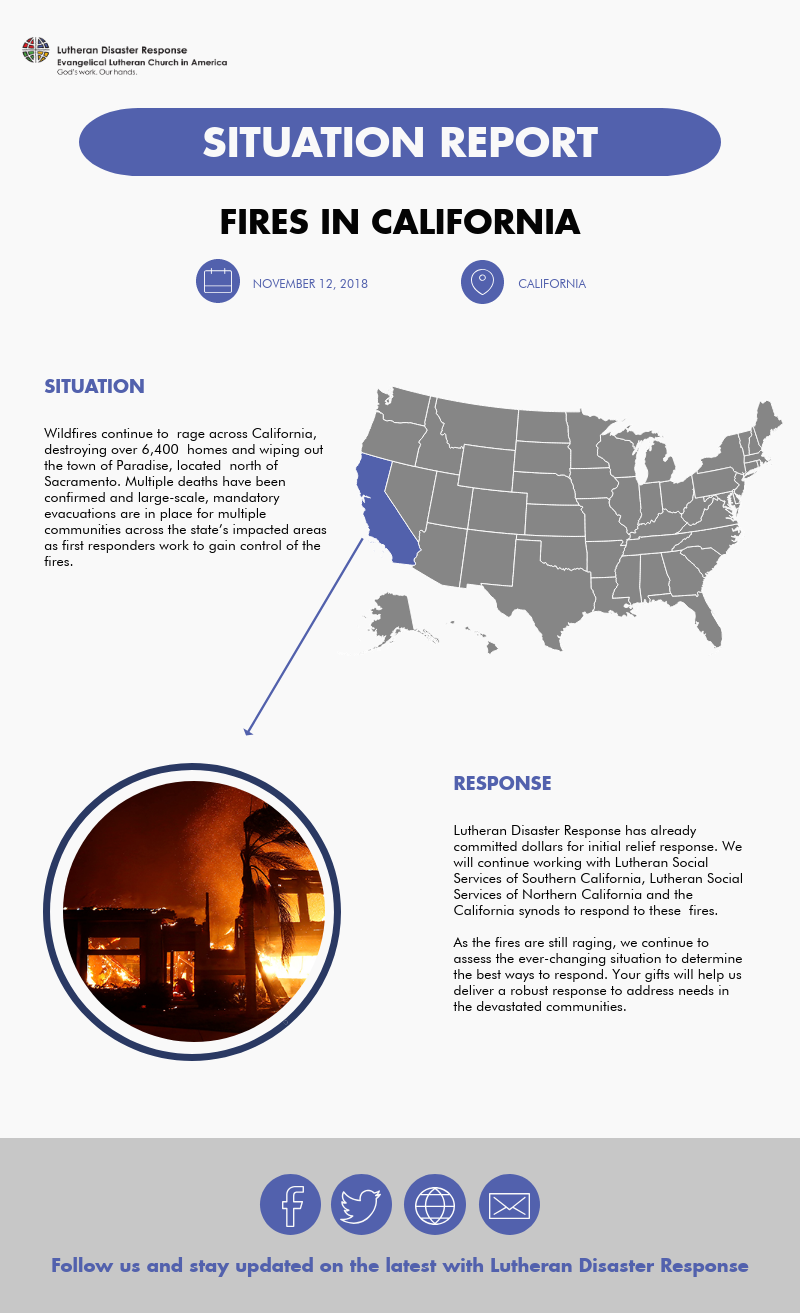 - Like Lutheran Disaster Response on Facebook and follow @ELCALDR on Twitter.