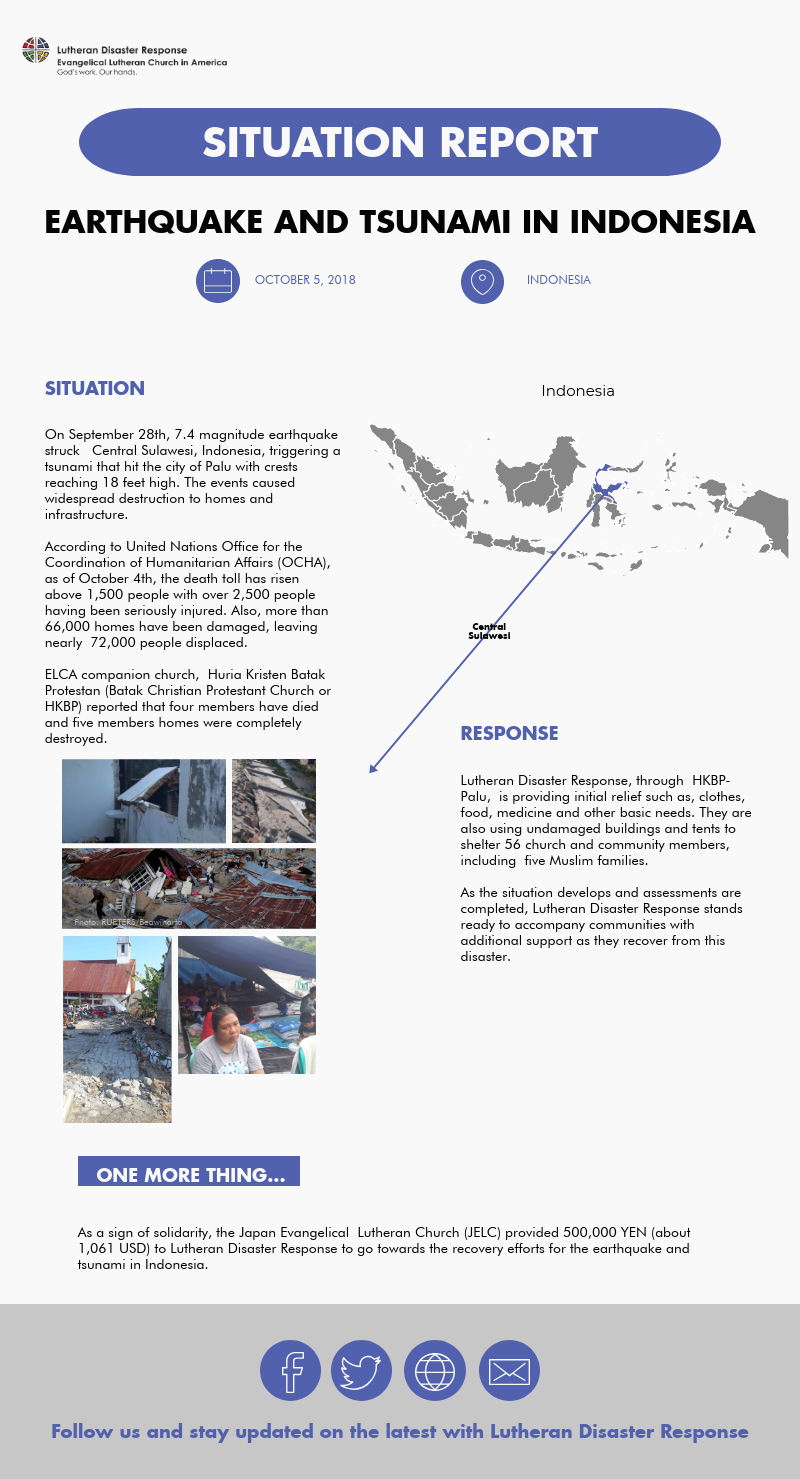 Gifts designated to “Indonesia earthquake and tsunami” will be used to assist those affected by this disaster until the response is complete.
