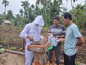 Initially, he had absolutely no knowledge about how to raise bees, let alone about the process of how honey can be produced. The world of beekeeping was completely new to him. However, through the training and mentoring provided in this program, he began to understand the whole process-from getting to know the bee colony, taking care of the hives, to harvesting honey sustainably.