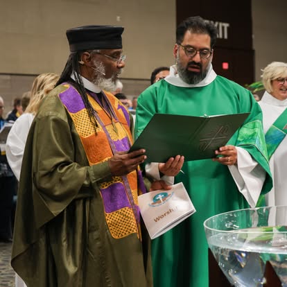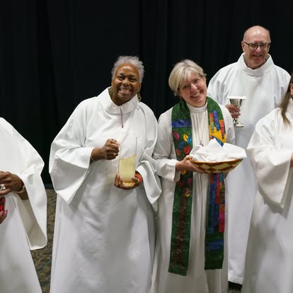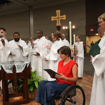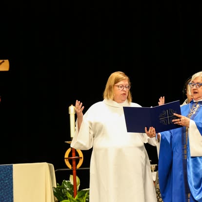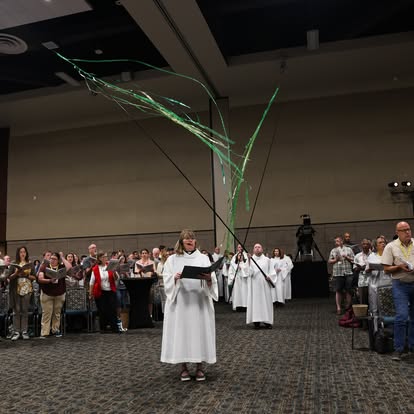 Over 1,000 people gathered in Phoenix, Arizona from July 28-August 2 for the ELCA 2025 Churchwide Assembly. The readings for worship were chosen to supplement the assembly theme, “For the Life of the World.” On Monday we proclaimed the body of Christ for the life of the world as we gathered for Holy Communion. Tuesday’s morning prayer centered us in baptism, as we heard the proclamation of John the Baptist in Luke’s gospel and gave thanks for the gifts of baptism. Wednesday’s service of Holy Communion focused on justice and peace for the life of the world and offered a time of communal lament. On Thursday morning, we prayed for the life of the world, adapting the format of Service of Word and Prayer as presented in All Creation Sings. For both Wednesday’s and Thursday’s services, the color of the day was blue, symbolizing our hope in Christ and our longing for justice and peace. Friday’s service of evening prayer in the plenary hall included a confession and repentance for the sins of patriarchy as called for in the ELCA Social Statement, “Faith, Sexism, and Justice.” We’’ll share more about that service and additional resources in a blog post later this fall. The final service of Holy Communion on Saturday affirmed our vocation as ones sent as the body of Christ for the life of the world.