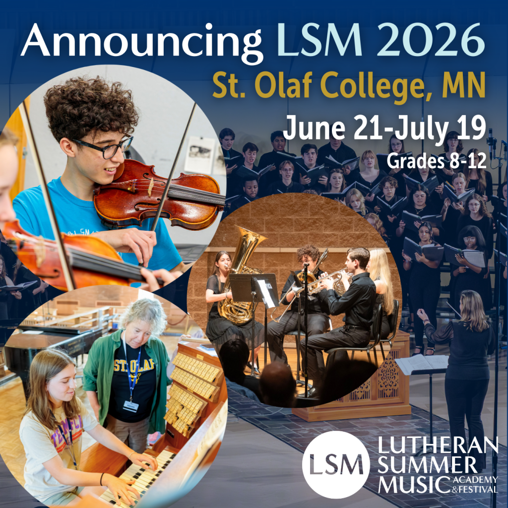Enrollment is now open for Lutheran Summer Music (LSM) 2026 at St. Olaf College in Northfield, MN! LSM is a faith-based residential music academy for high school students who come together to immerse themselves in musical excellence and build a supportive and fun community. Musical experiences include large ensembles (band, choir, orchestra), chamber music, private lessons, and electives like handbells, jazz, musical theatre, composition, conducting, church music, and more.