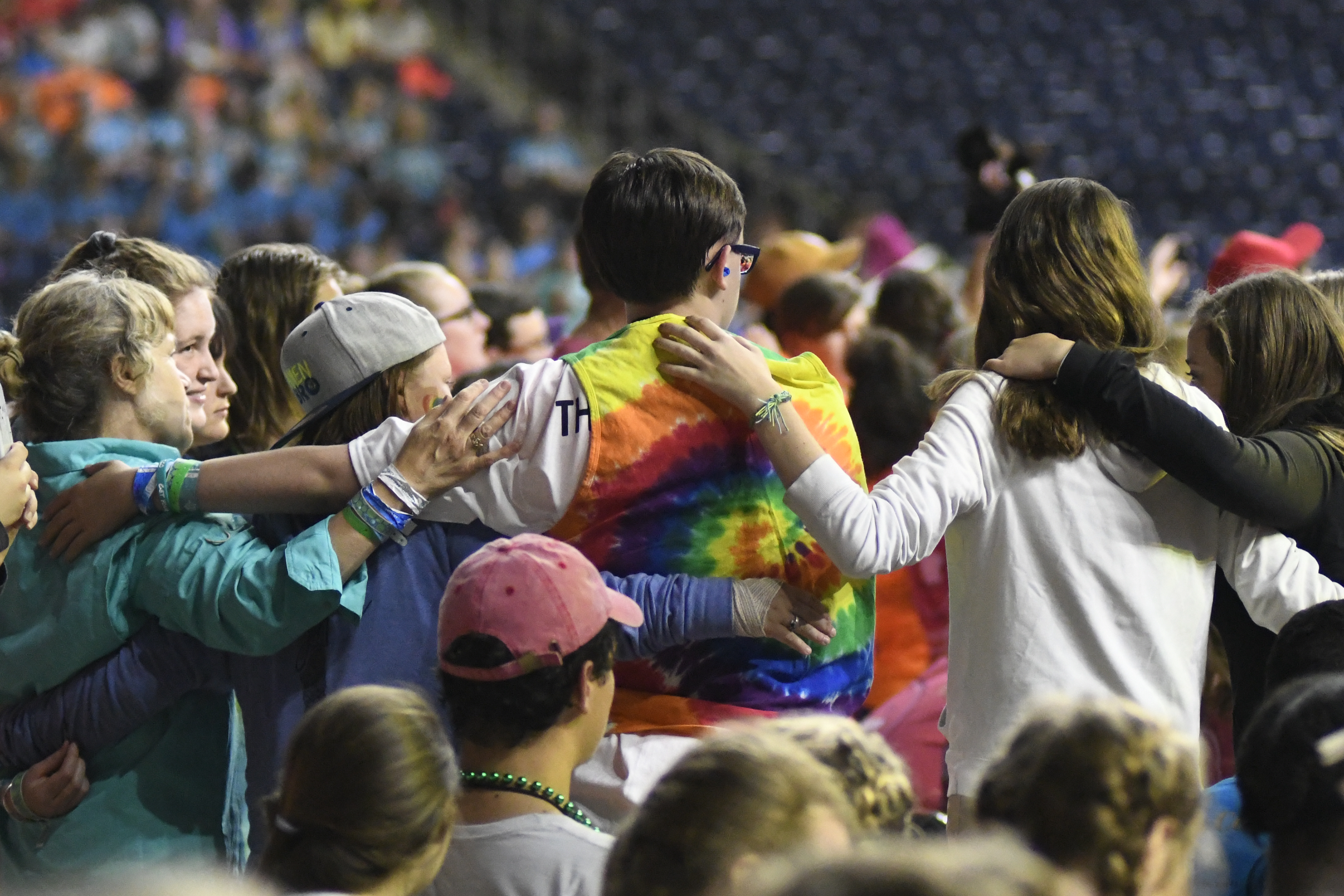 For Sullivan, the most powerful moments of the night were when she and youth around her were singing and swaying together to music. Following Bolz-Weber’s speech, youth with “Loved” shirts flooded the stage and floor as the House Band performed its final song.